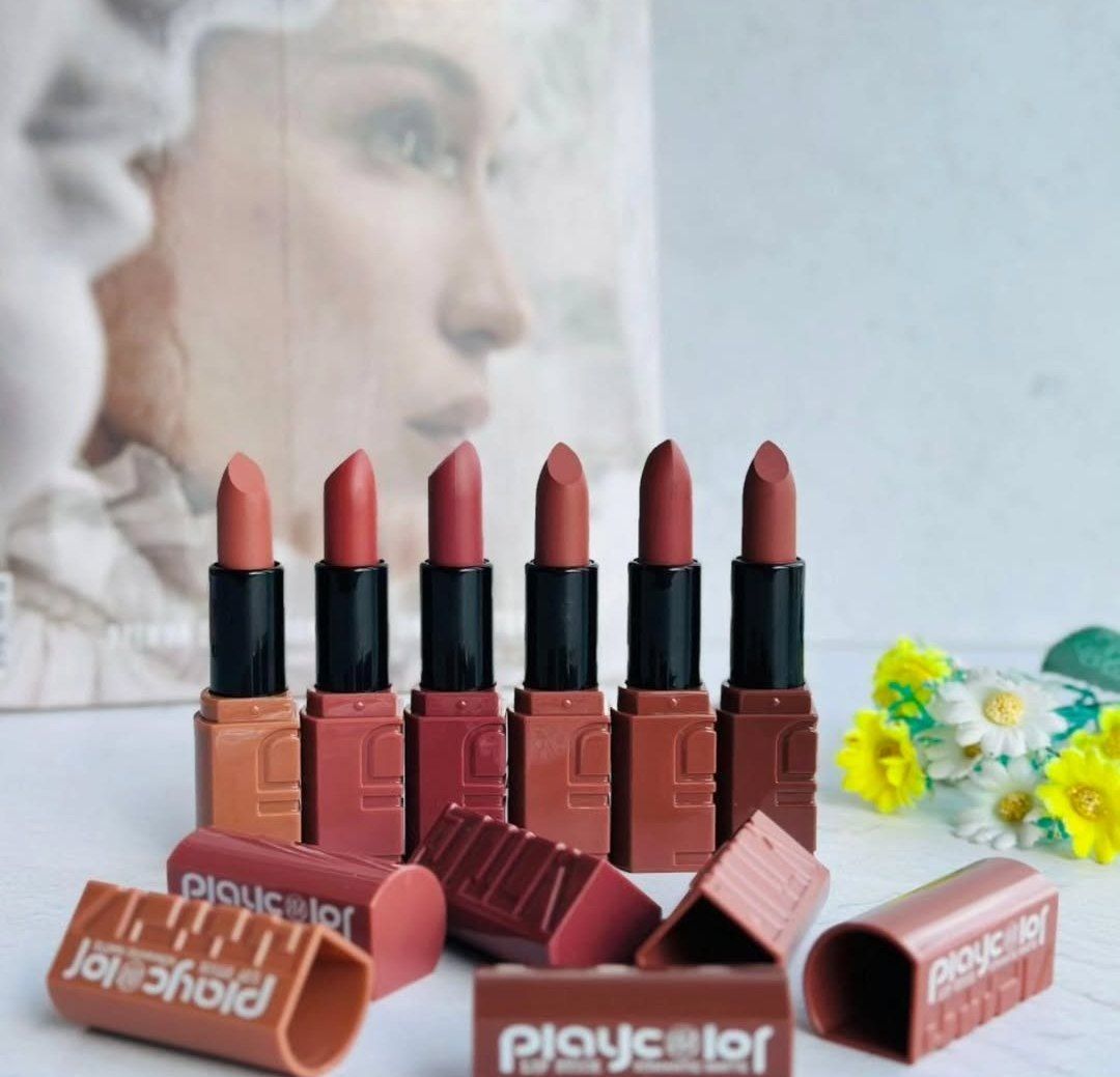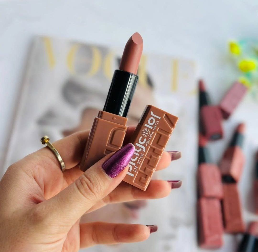 رژ جامد رومانتیک مات مدل پلی کالر در 6 رنگ گوشتی و جذاب بدون پارابن و گلوتن بدون چسبندگی بدون پوسته شدن روی لب بدون ترک خوردگی کیفیت و رنگدهی عالی